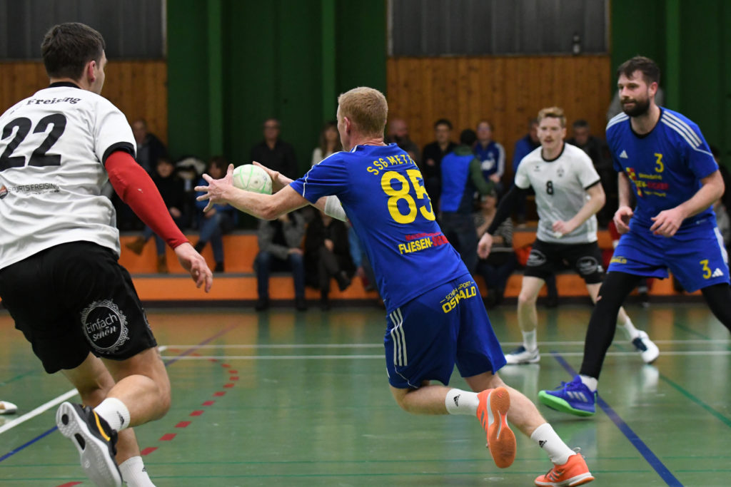 Dank einer beispiellosen Energieleistung bezwangen die Oberliga-Handballer der SSG Metten im ersten Heimspiel des Neuen Jahres den SC Freising knapp aber verdient mit 32:31 (Halbzeit 11:18). Das erfolgreiche Handball-Wochenende in Metten wurde komplettiert durch Siege der Bezirksliga-Damen über den TSV Indersdorf mit 29:25 (14:11) und der Herren II gegen die HSG Straubing 2008 mit 35:30 (16:14).