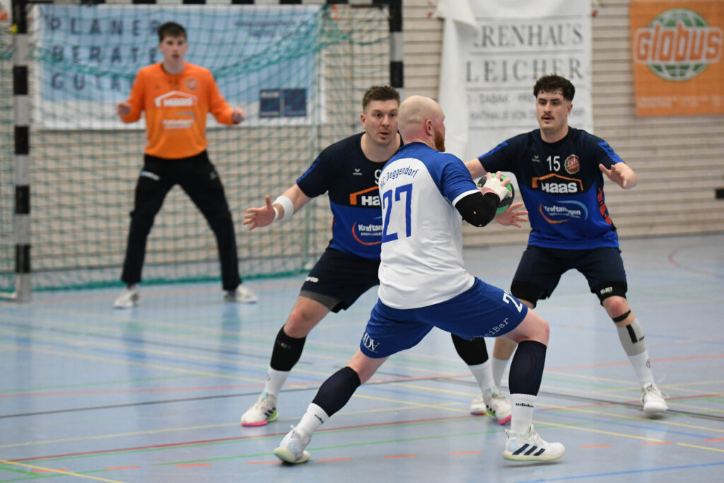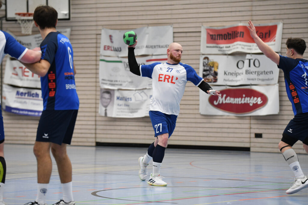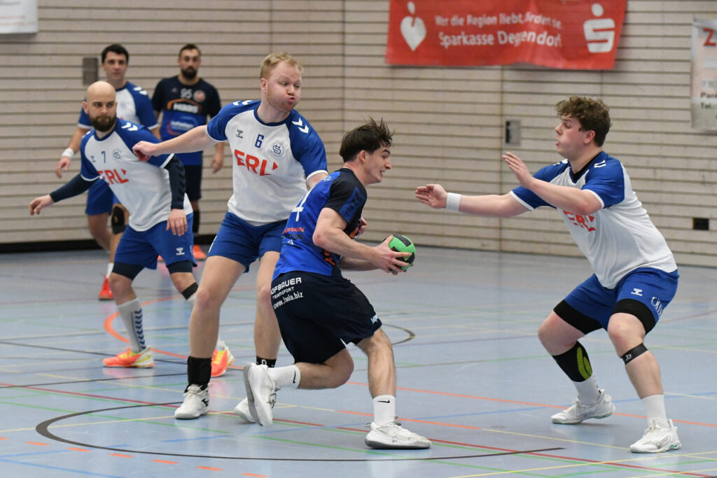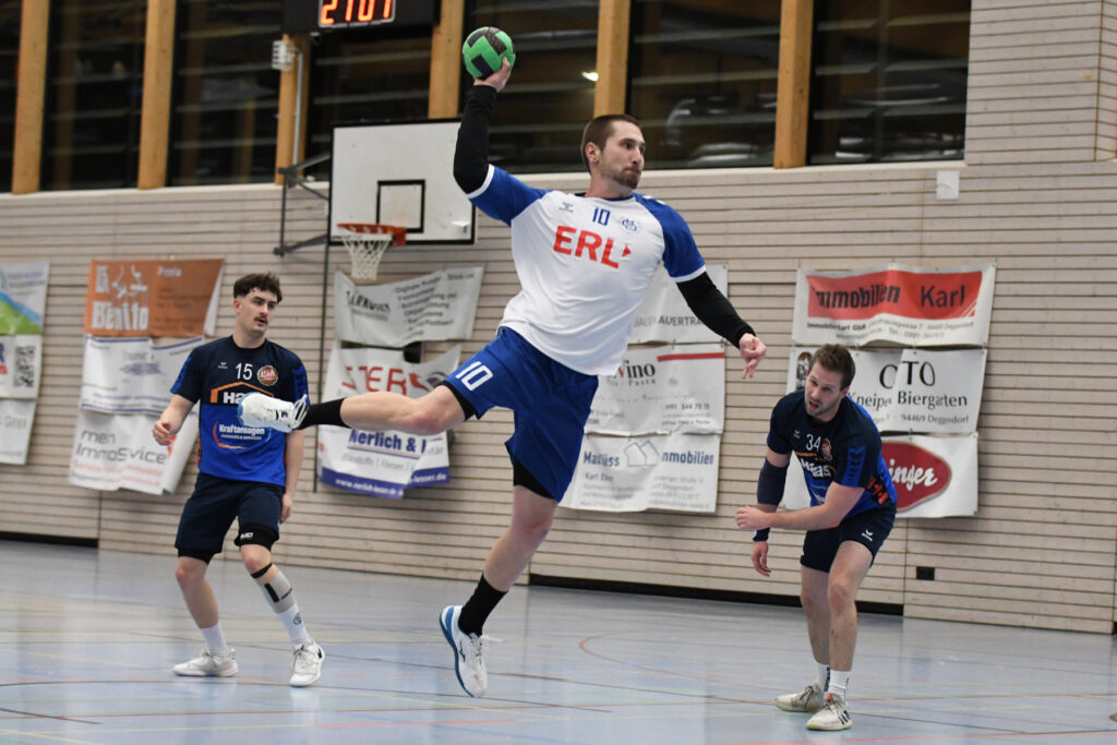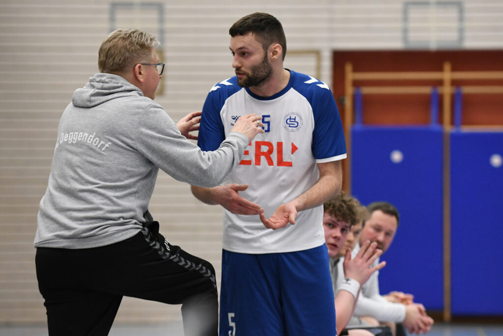 Doch auch die Gäste vom Inn spielen eine hervorragende Saison und ließen sich nicht einschüchtern. Im Handumdrehen kontern sie die Treffer der Hausherren und ließen sich nicht wirklich abschütteln. Und immer wieder war es Routinier Tim Manthey, der die Deggendorfer Abwehr zum verzweifeln brachte. Am Ende standen erneut sage und schreibe 13 Treffer auf seinem Konto, obwohl er ab der 10. Minute in Manndeckung genommen wurde. Zwar konnten sich die Gastgeber immer wieder mal auf 4-5 Treffer absetzen, doch die TSVler hatten immer wieder eine Antwort parat. Rein objektiv waren die Deggendorfer spielerisch besser, doch zur Halbzeit stand „nur“ ein 21:18. Ein Pausenstand, der in anderen Partien durchaus als Endstand durchgehen würde.