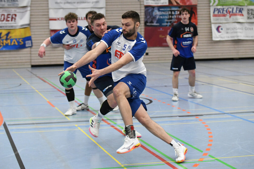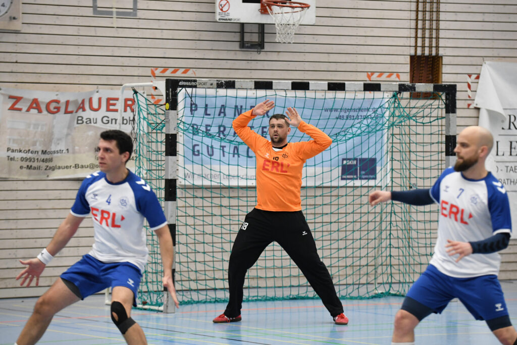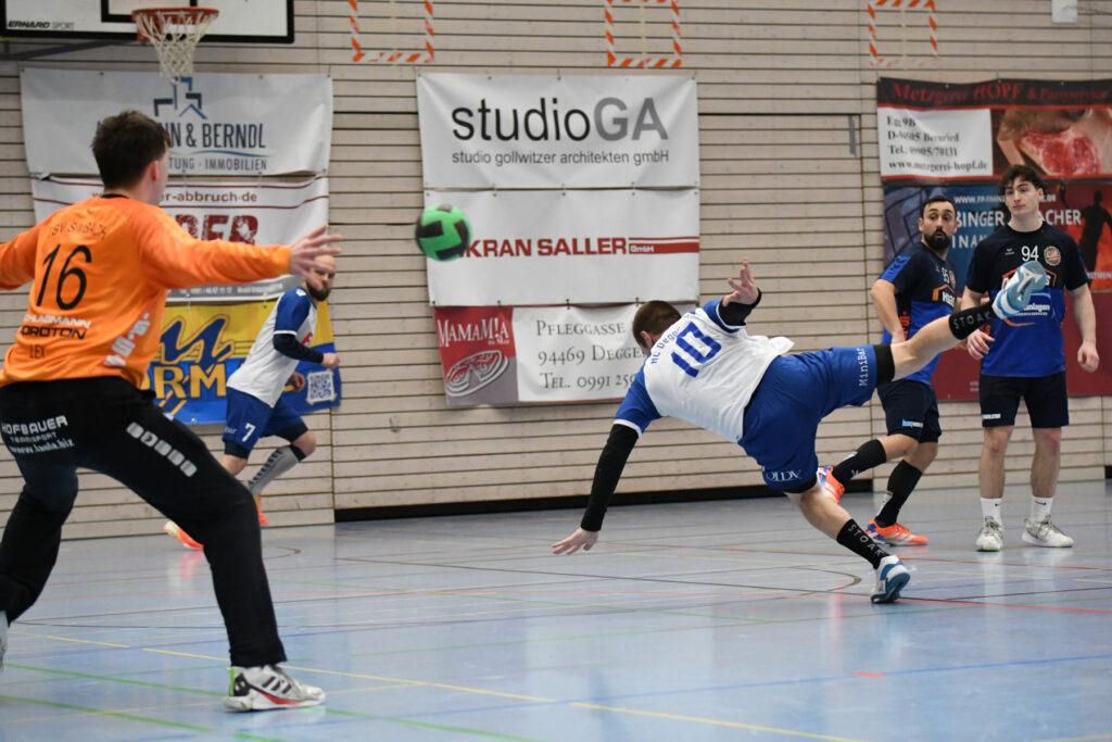 Gleich von Sekunde Eins weg ging es rund auf der Platte. Ein rasantes Hin und Her, bei dem anfangs die Deggendorfer gefühlt besser ins Spiel kamen. Immer wieder fand die starke Rückraumachse um Lotos, Stengl und Poek selbst eine Lücke und setzten ihre Außen- und Kreisspieler bärenstark in Szene. Allem voran Aaron Zaglauer war von der Außenposition an diesem Tag nicht zu stoppen und erwischte auf der für Ihn ungewohnten Position einen wahren Sahnetag. Und aufh Jan Stengl stellte wus dem Rückraum früh das Visier ein und ließ die Kugel immer wieder in den Maschen einschlagen. Aber auch alle anderen Donaustädter waren in bester Form und man merkte ihnen den Willen an, dieses Spiel zu gewinnen.