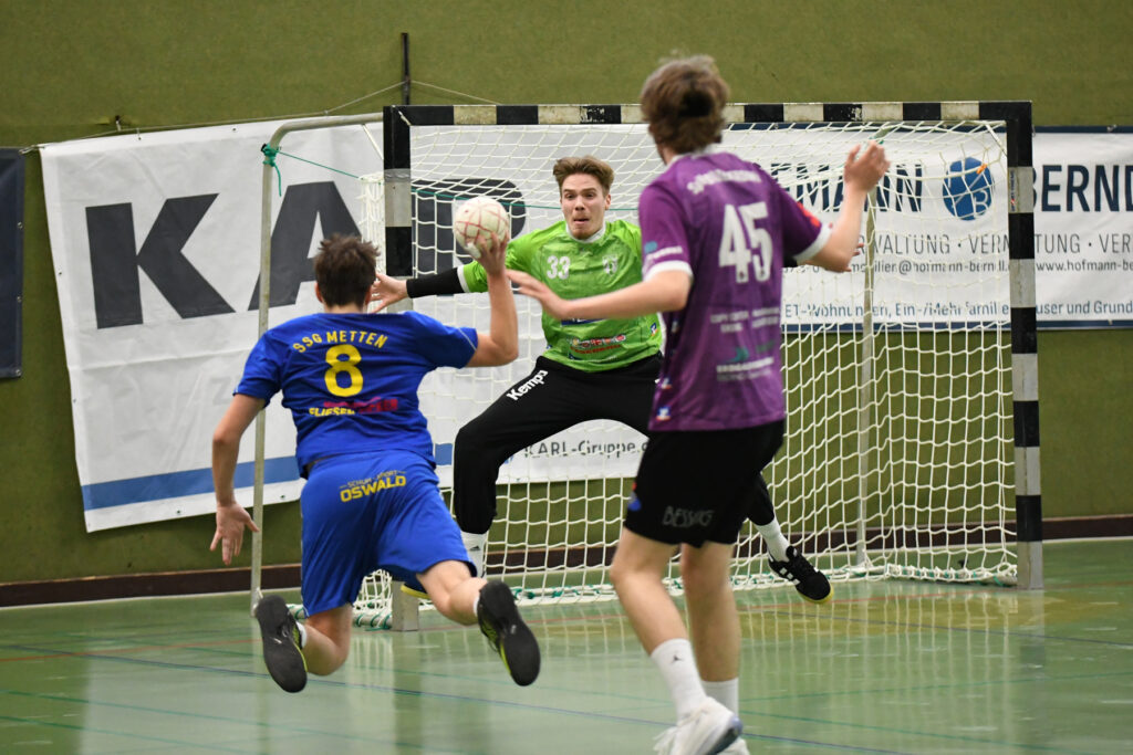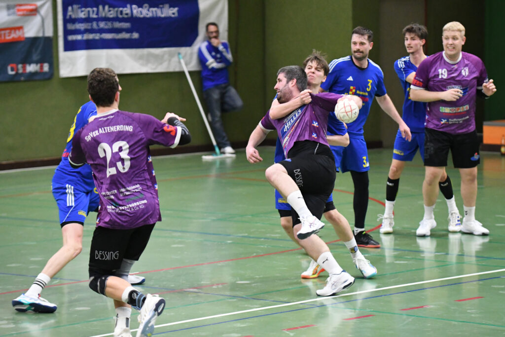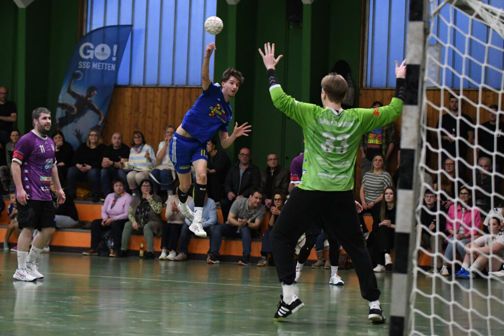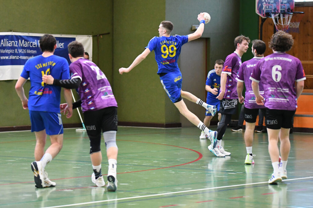 In dieser Saison entwickelt sich die HandballerInnen der SSG Metten zu Angstgegnern für die SpVgg Altenerding. Zuletzt besiegtendie SSG-Damen den Ligaersten in eigener Halle mit 24:23 und dann dies:  Mit breiter Brust traten die SpVgg-Herren als Liga-Primus bei nur einer Niederlage am vergangenen Samstag gegen die abstiegsgefährdeten Mettener zum vermeintlich leichten Spiel an. Doch schneller als gedacht schien sich die von Chefcoach Florian Flo Sedlmeier angekündigte Überraschung zu erfüllen, denn die Hausherren starteten mit Höchstgeschwindigkeit in die Partie.