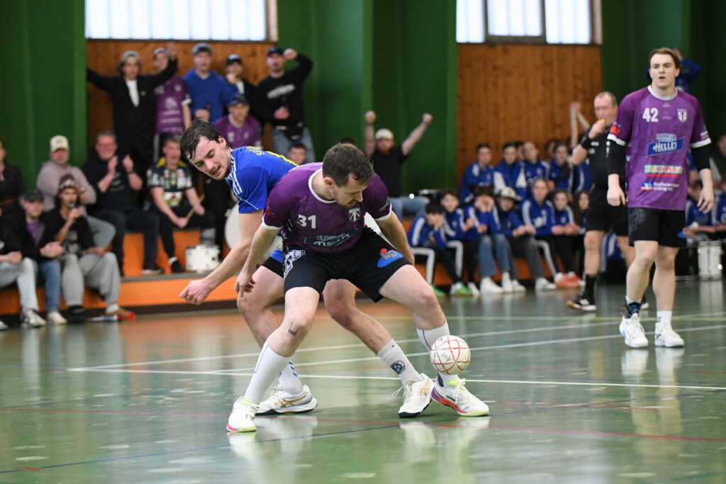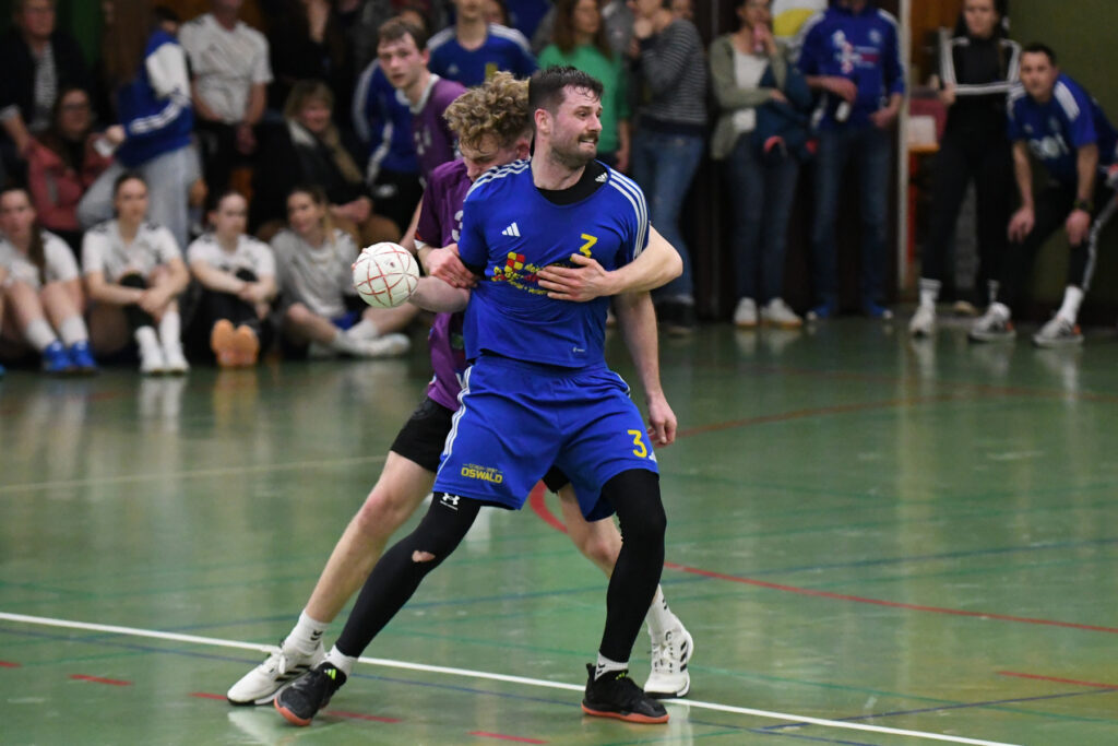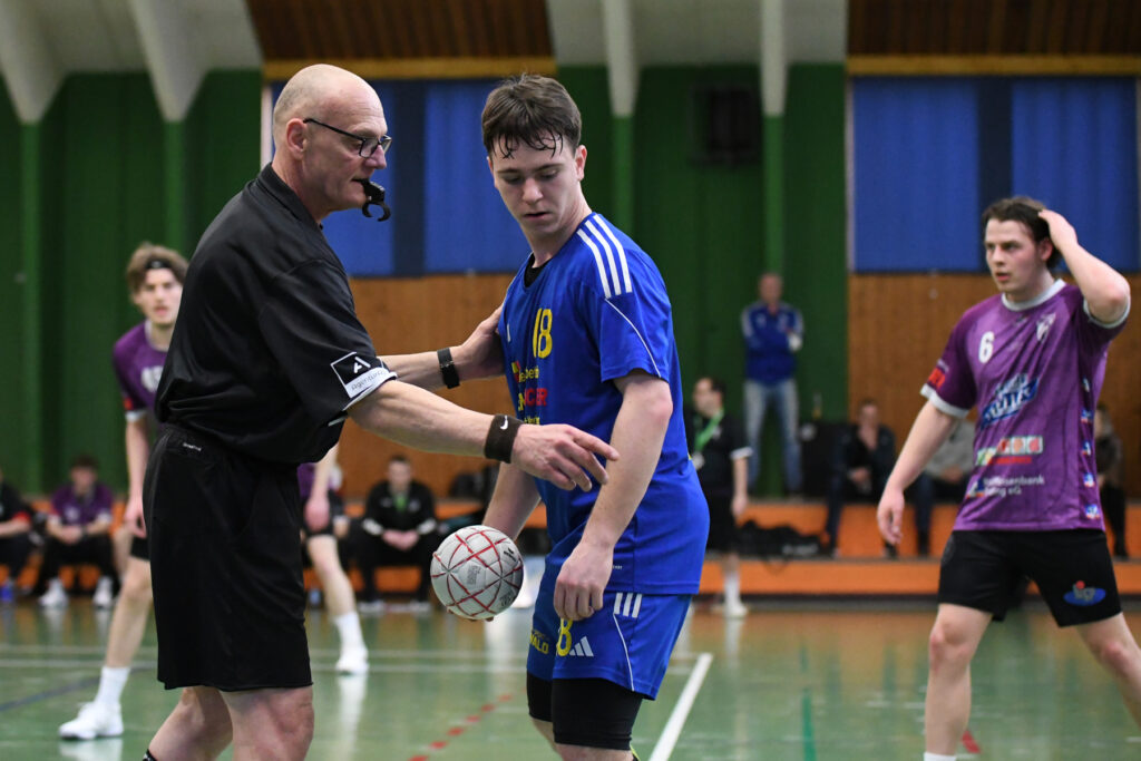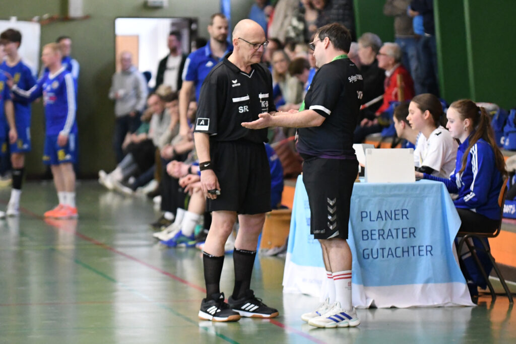 Doch auch die Abwehr der Gastgeber war an diesem frühen Samstagabend hellwach, agierte aggressiv, aber regelkonform. Es war auch das Verdienst der beiden hocherfahrenen Schiedsrichter Fritz Prenißl und Karl-Heinz Späth Fritz vom ASV Cham. Das Duo war kürzlich vom Bayerischen Handballverband „für seine langjährigen Verdienste um Verlässlichkeit, Neutralität und großes Verantwortungsbewusstsein im Schiedsrichterwesen“ ausgezeichnet worden. Und so geschah es, dass in dem von körperlichem Einsatz geprägten, aber insgesamt fair verlaufenen Match der oft als Bösewicht markierte SSG-Abwehrchef Patrick Sigl gerade einmal eine Gelbe Karte gezeigt bekam.