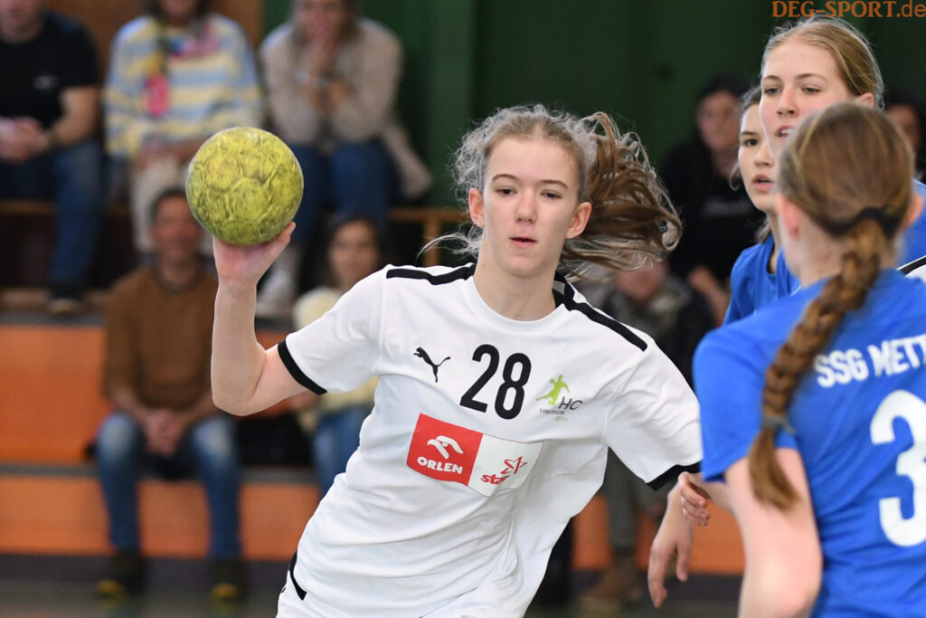 Schöner Handballnachmittag in unserer Halle ! Unsere weibliche B-Jugend in der Oberliga empfing mit dem HC Forchheim eine punktgleiche Mannschaft aus Franken. Nach dem unglücklich verlorenen Hinspiel war die Motivation riesig – und vor toller heimischer Kulisse war von Beginn an zu spüren: Heute bleiben die Punkte in Metten!